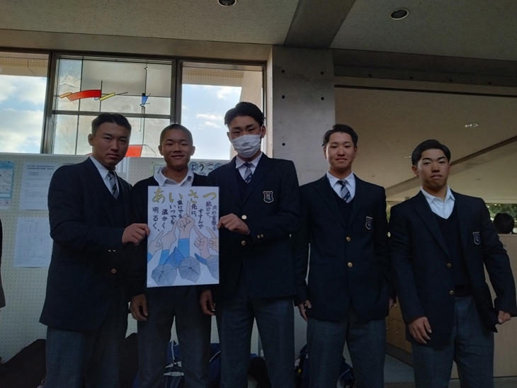 男子剣道部・女子剣道部・硬式野球部・生徒会の代表のみなさんであいさつ運動をしました。 男子剣道部:日本一を目標に日々取り組んでいます。 受験生のみなさんへ 勉強頑張ってください!! 女子剣道部:全国選抜大会とインターハイ優勝、日本一を目標としています。 受験生のみなさんへ 奈良大附属高校で待ってます!! 硬式野球部:目標は甲子園出場!! 受験生のみなさんへ 受験頑張ってください!! 必ず合格してください!! 今日も元気に「おはようございます!!」