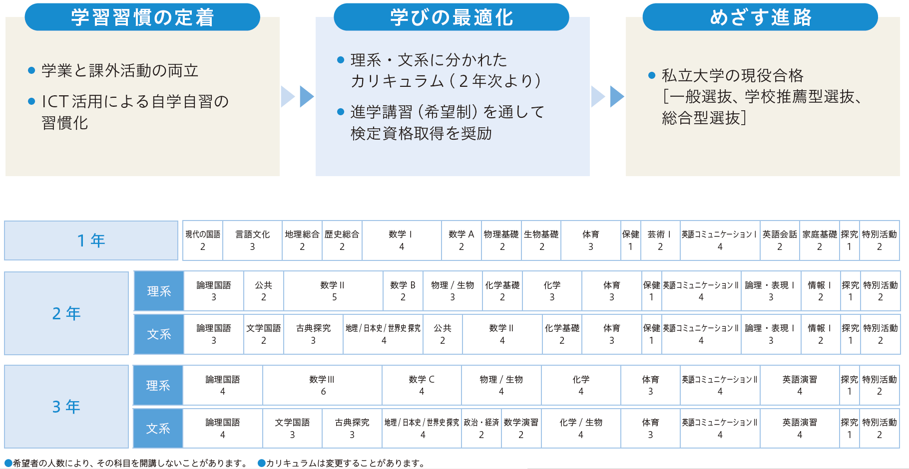 ■大学受験に必要な学力を身につける学習活動と、部活動などの課外活動との両立を奨励し、自己探究をサポートします。