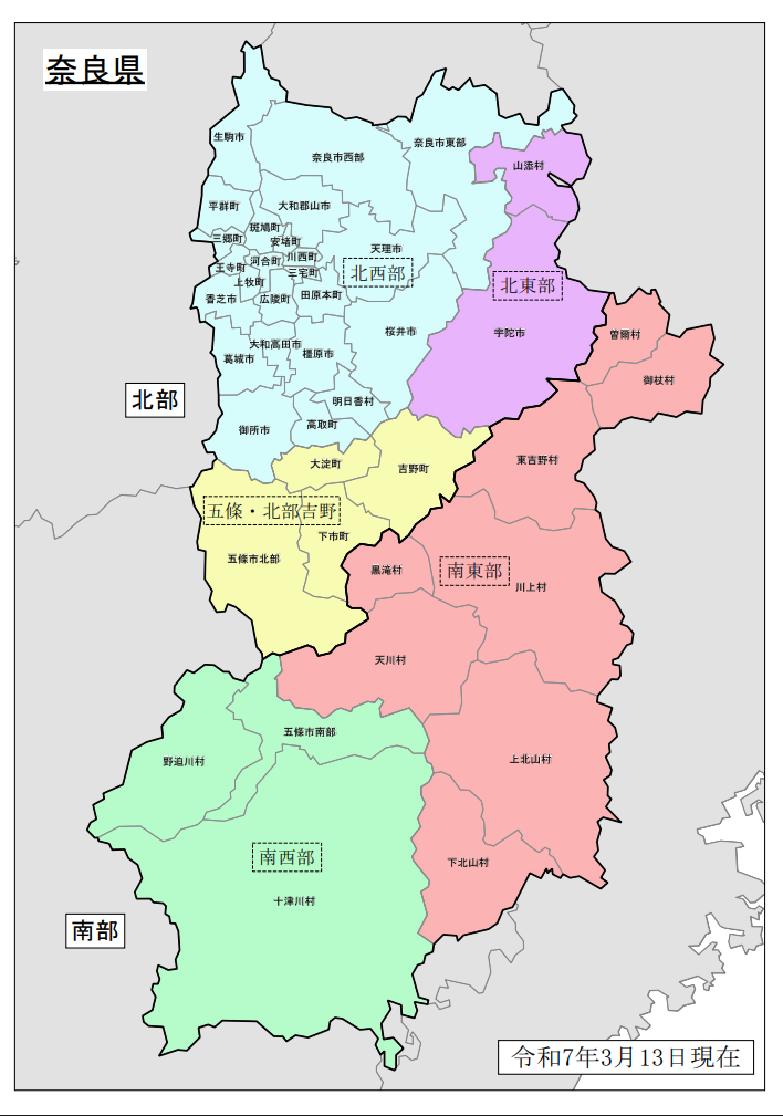 1.奈良県全域・奈良県北部・奈良県北西部または奈良県北西部に含まれるいずれかの市町村に、午前7